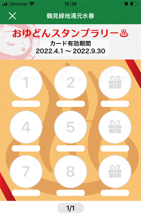 - 1会員のご入浴につき、スタンプを1日1個まで付与します。